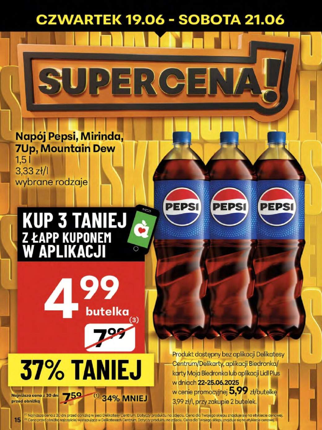 Pepsi to napój gazowany, który dostarcza orzeźwienia w każdej sytuacji. Idealny do picia na ciepłe dni, spotkania towarzyskie czy jako dodatek do ulubionych potraw. W Żabce dostępny w różnych pojemnościach, co pozwala na łatwe dopasowanie do indywidualnych potrzeb. Obecnie trwa promocja - przy zakupie dwóch butelek można skorzystać z atrakcyjnej zniżki. Nie przegap okazji, aby cieszyć się pełnią smaku Pepsi!
